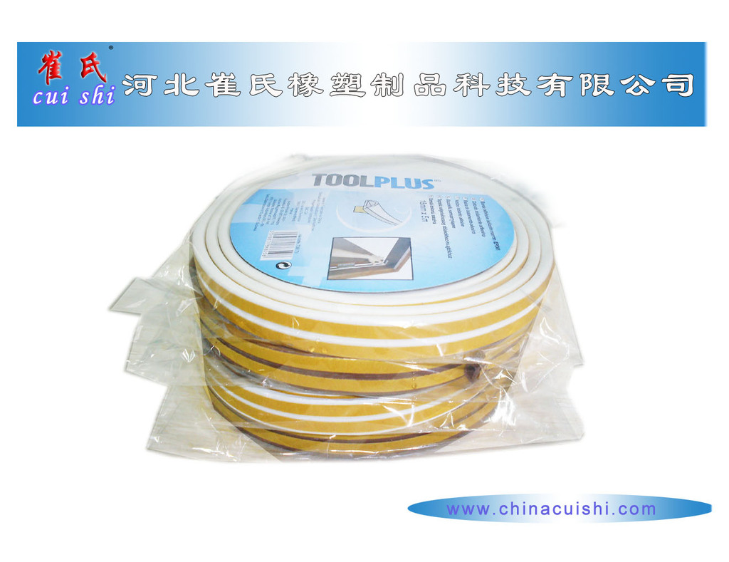 产品特点:自粘式木门密封条采用三元乙丙(EPDM)橡胶发泡而成,造就了它卓越的特性。●优异的耐天候抗老化性能 ●耐臭氧、耐化学腐蚀特性 ●发泡柔性密封条●优异的耐寒耐热性能(-50℃~+170℃) ●超强弹性,200%的拉伸 ●物美价廉