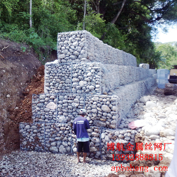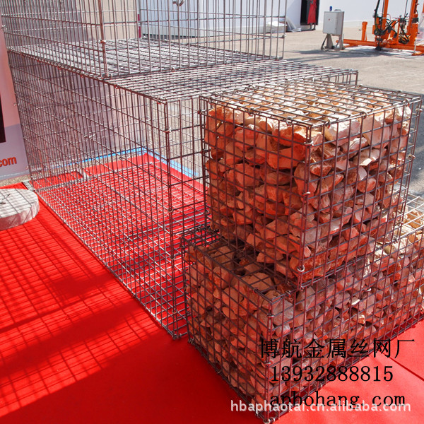 石笼网:它是一种生态格网结构。石笼网由高抗腐蚀、高强度、具有延展性的低碳钢丝或者包覆PVC的以上钢丝使用机械编织而成,使用该网制作而成的箱型结构就是石笼网。根据ASTM和EN标准,所使用的低碳钢丝直径根据工程设计要求而不同。一般介于2.0-4.0mm之间,钢丝的抗拉强度不少于38kg/m2,金属镀层重量一般高于245g/m2石笼网片的边缘线直径一般要大于网线直径。其双线绞合部分的长度不得小于50mm.以保证绞合部分钢丝的金属镀层和PVC镀层不受破坏。石笼网孔径:6X8|8X10|8X12|10X12|10X14|12X15|16X18|22X27格宾网规格:2mx1mx1m,3mx1mx1m,4mx1mx1m,2mx1mx0.5m,4mx1mx0.5m,还可按客户要求进行生产。