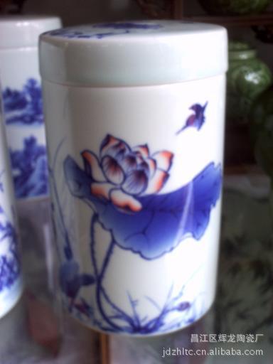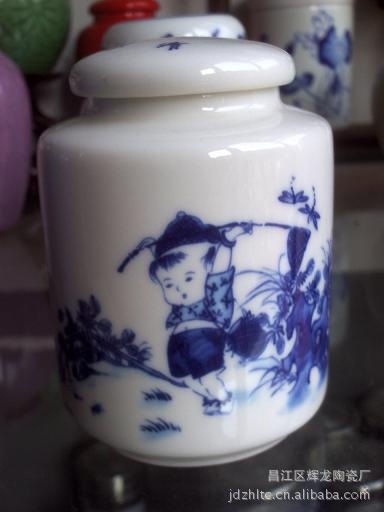 景德镇青花陶瓷,青花茶叶罐。售价18一个粉彩茶叶罐