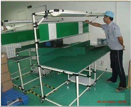 3.工作台面:采用T18密度板制作,面贴绿色防静电胶皮,灰色胶皮包边;