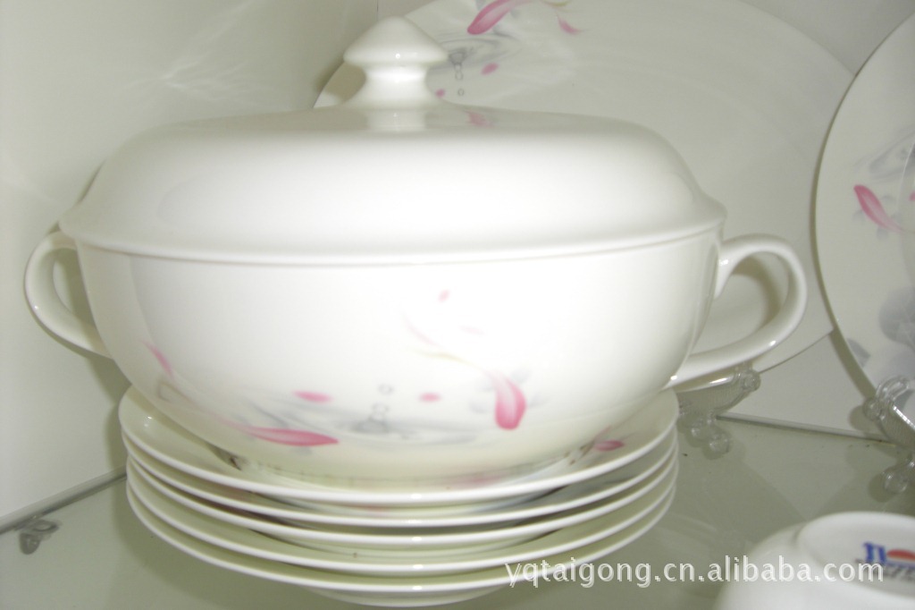 东旭品牌,景德镇十大名牌企业之一。此套餐具为富贵鱼,骨质瓷,5A健康用瓷(无毒,无害,无铅,无铬,无銾),牛骨粉含量为45%为最高含量,含5%的珍珠粉,不沾油渍,非常好清洗,用温水冲洗即可。