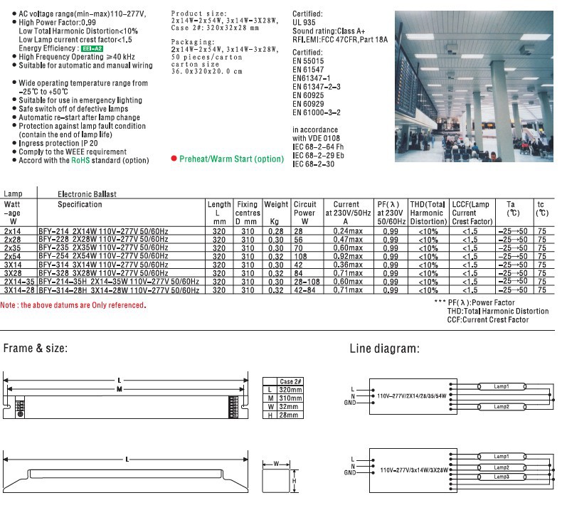 BFY-214 2x14W 110V-277V 50/60 | 310 | 320x32x28 | 0.28 | 0.24max |