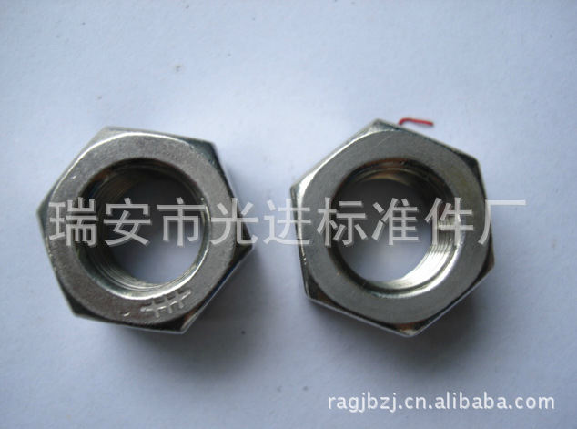 2、螺母就是螺帽与螺栓或螺杆拧在一起用来起紧固作用的零件,所有生产制造机械必须用的一种元件。螺母的种类繁多,我们常见的有国标、德标、英标、美标、日标的螺母。螺母根据材质的不同,分为碳钢、高强度、不锈钢、塑钢等几大类型。根据产品属性对应国家不同的标准号分为普通、非标、(老)国标、新国标、美制、英制、德标。