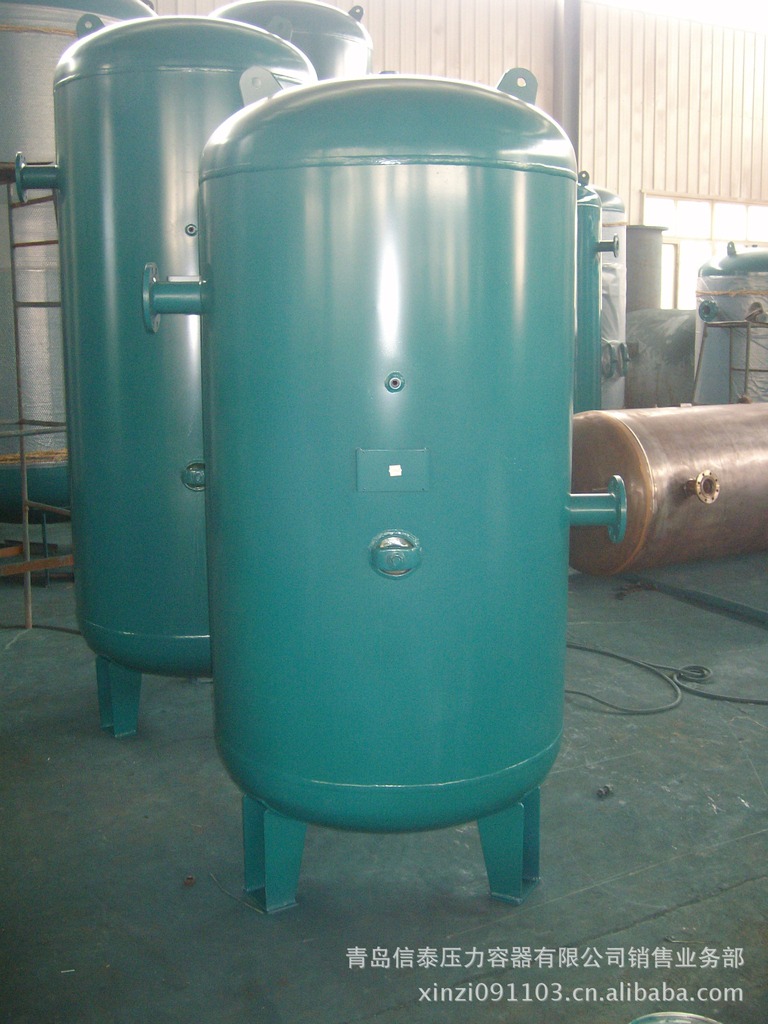 是指专门用来储存气体的储罐,同时起稳定系统压力的作用,根据承受压力不同可以分为高压,低压,常压储气罐;根据使用的金属材料不同可以分为不锈钢储气罐,碳钢不锈钢储气罐,合金材料不锈钢储气罐.;按结构分为立式和卧式储气罐;我公司生产的空压机配套储气罐容积从0.3m3~50m3不等,结构为立式,设计压力有0.8、1.0、1.3、1.6、2.5、3.0、4.0MPa等系列,材质分碳钢和不锈钢两种;每台储气罐均配有安全阀、压力表、排污、配对法兰及锅检所颁发的产品合格证明书,尽可放心使用!