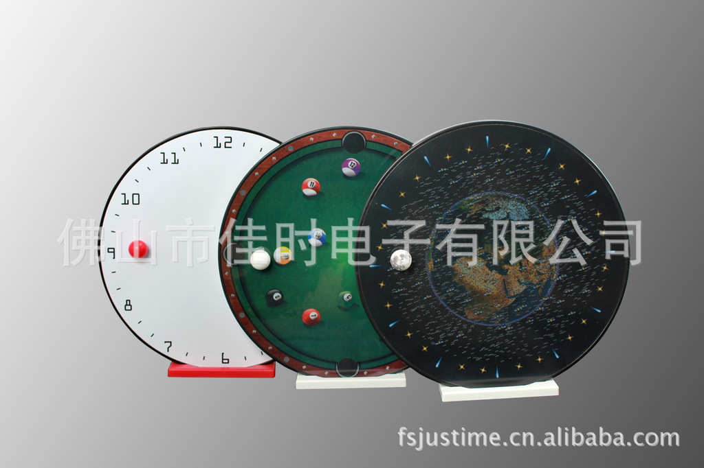 新颖挂钟,采用独特机芯,以可移动小球取代传统指针,款式新颖独特。