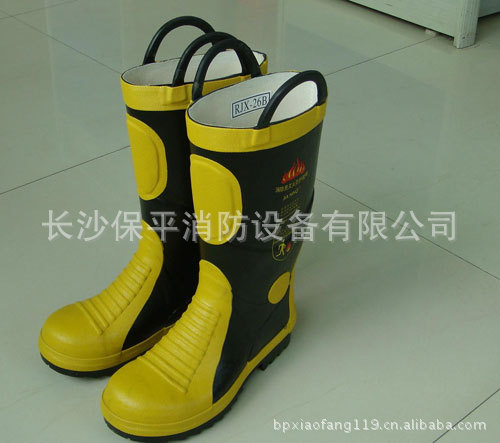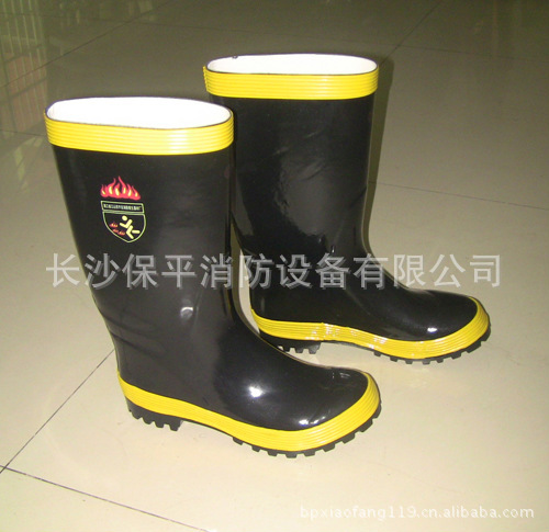 消防胶靴是消防队员在灭火战斗中用来保护脚和腿使之免受水浸、外力和热辐射等因素伤害的防护用具。