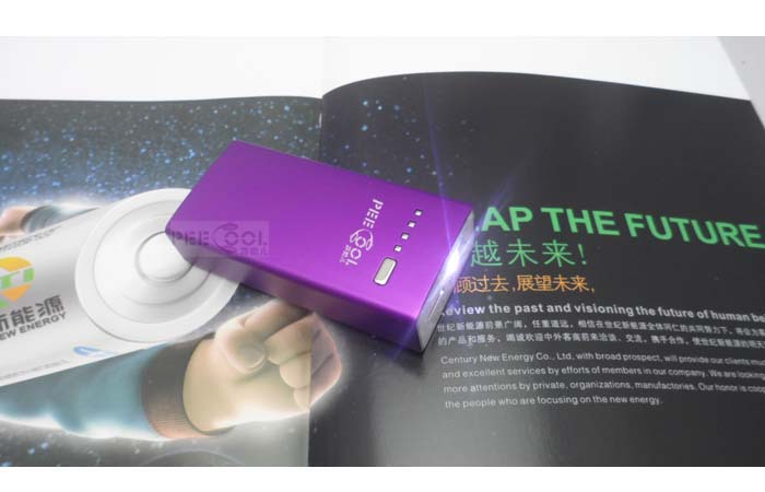 1、电源开关:按一下“输出开关”启动5VDC输出,当前LED显示电池容量比例,再按关闭输出;