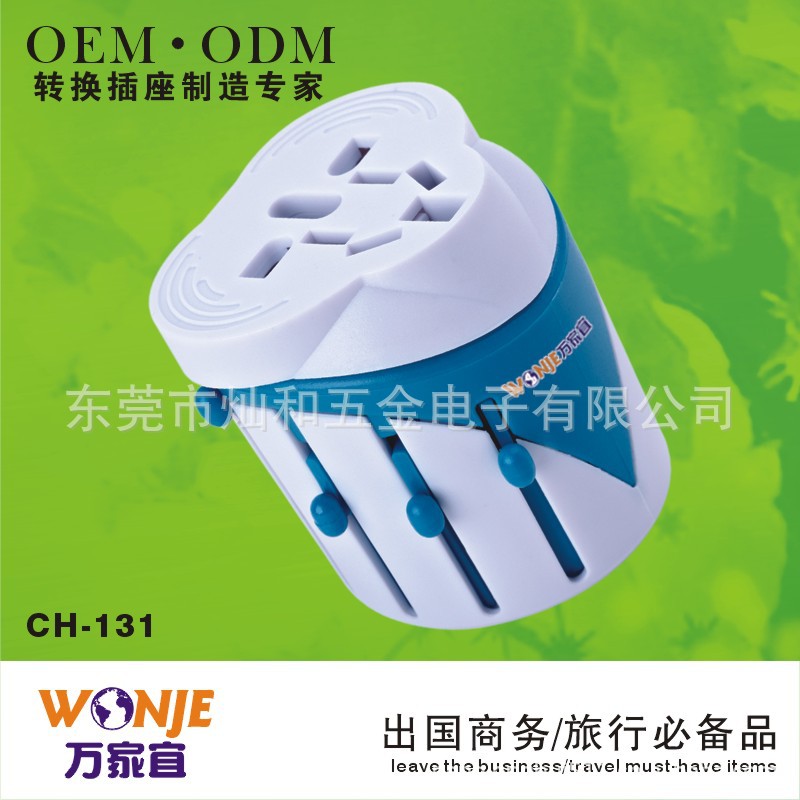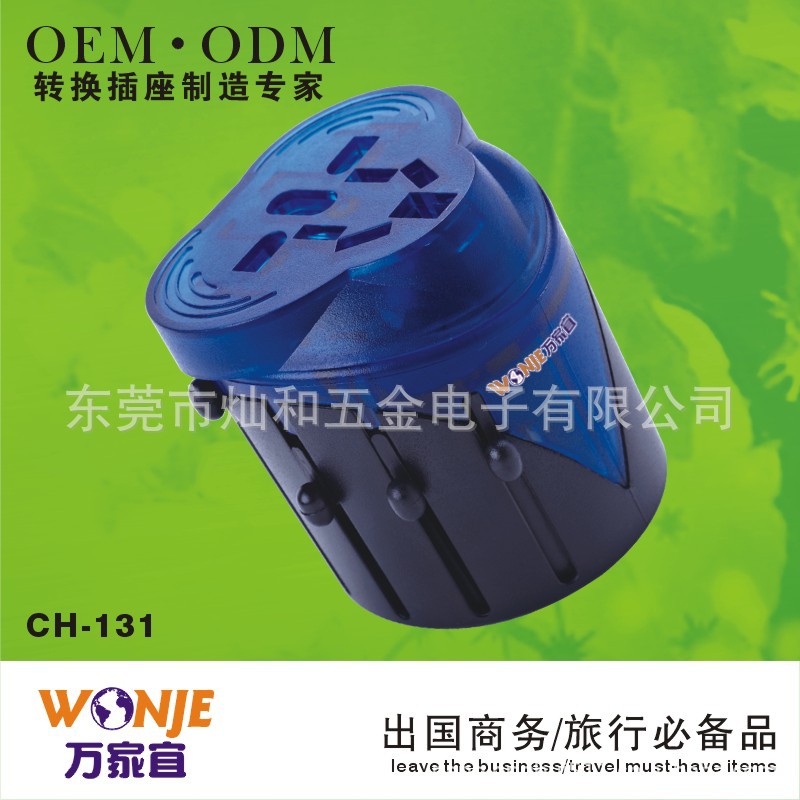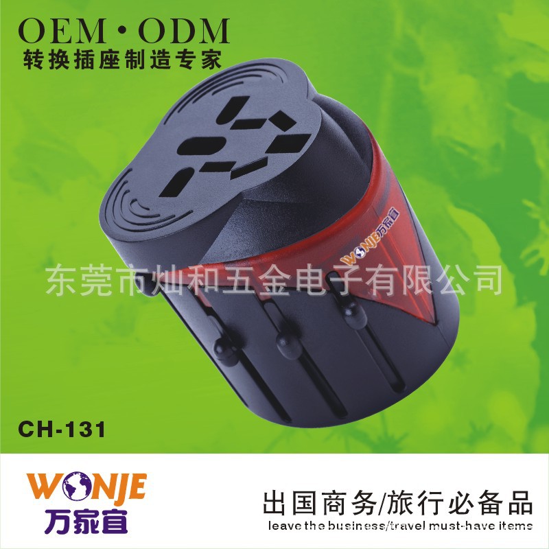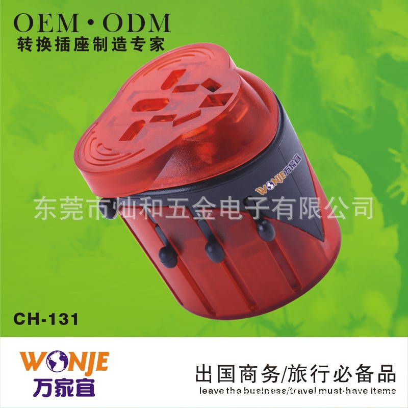 一、本产品适用于全球150多个国家: 1、亚洲:中国、日本、马来西亚、新加坡、韩国、印尼、香港、澳门、泰国、越南等等 2、欧洲:英国、法国、德国、意大利、西班牙、澳地利等等 3、美洲:美国、加拿大、巴西、巴拿马、爪地马拉、墨西哥等等 4、澳洲:澳大利亚、纽西兰等等 5、中东:沙乌地阿拉伯、联合大公国、以色列、约旦等等 二、本产品不适用地区:非洲部分地区。 三、适用范围:本产品用于不同国家标准的插头插座相互转换;适用于个人数码助理(PDA)、数码相机、充电器、光碟机、笔记本电脑、刮须刀等小功率电器。 四、产品优点: 1、本产品精致、美观,功能强大,集多国标准插头于一体。在世界任何地方都能够轻松地连接上你的电器产品,实现了真正意义上的全球通。 2、插脚部分:为全球最流行的四种不同制式可伸缩插脚“英式(三个方插脚)、欧式(二个圆插脚)、中/美/日式(双扁插脚)、澳式(八字双扁插脚)”。 3、AC插座部分:为多功能插孔,适合全球多国插头的使用。(可转换两脚和三脚的插头) 4、可根据你的需要:产品集合全球通四大插头于一身,便于为你的随身笔记本电脑、手机等充电,无需复杂的电源转换,也不必携带多个电源适配器/充电器。 五、电压:本产品可处理AC(110-240V)标准电压,不具备变压功能。(最高可负载:2200W) 六、本产品是您-----出国旅行、留学、商务考察、探访亲友的最佳伴侣;可作为高级电子礼品赠送他人,体现关怀,是电子商务礼品的首选。 包装:普通包装 白盒包装 吸塑 彩盒包装等等另计 根据客户要求定做 型号:CH-131 产量:350000/month 商标:万家宜