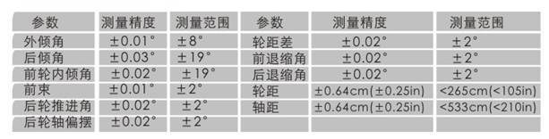 具备拓展性测量。可实现退缩角、推力角、轴偏距、轮偏距、轴距、轮距、轮胎直径、磨胎半径、滚动半径、动态举升测量、前束为零时外倾角、20度展向角、最大转角、方向盘回正等。