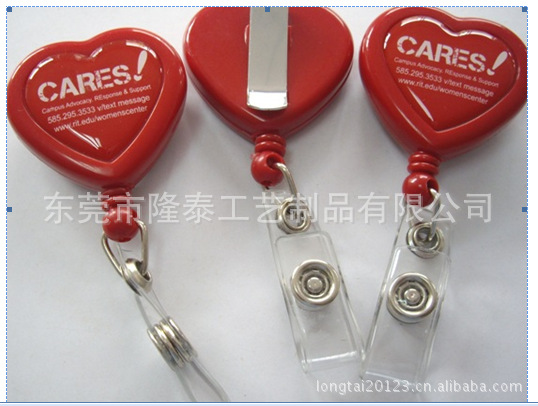 主要产品介绍:产品由ABS塑胶或合金或搪胶外壳组成,外表可以电镀或喷油;颜色可根据客人提供的任意PANTONE色号生产;产品内置高弹力高性能发条(弹簧),强力尼龙绳(或钢丝绳)自由伸缩可达到900MM,(电脑屏幕擦下有贴头,粘贴于屏幕边缘,来回清洁屏幕,伸缩自如)背面装金属夹子或锷鱼夹,能自由或旋转活动;正面可粘贴或丝印客人指定样式的LOGO,下挂PVC条、手机绳、钥匙圈等配件,用来挂工作牌/厂牌/配套织带挂件/手机/钥匙等物件,具备宣传与广告、防盗防丢等多重功能。产品规格有:32mm*10mm、25mm*10mm、28mm*10mm、40mm*10mm、32mm*32mm*32mm(方形)、35mm*39mm*12mm(椭圆形)47mm*11mm、34mm*34mm(方形电脑屏幕擦)、34mm*32mm(圆形电脑屏幕擦)。我司的各款产品外表均可以进行丝印、电镀、喷油、烤漆等方式进行处理,以达到更加个性化的装饰及需求.我司产品做过弹性恒久测试,10万次自由拉伸不变形,所以质量有保证。品质保证系统:IQC(来料检验)、IPQC(过程检验),FQC(最终检验)(100%全检)。客户产品验货水准:MIL-STD-105E(国际通用验货标准)。产品售后保证:凡我厂生产产品,不合格,便退货。说到做到。品质政策:品质至上 信赖 追求卓越***联系方式***地 址:广东省东莞市沙田镇大泥管理区电 话:0086-769-81699973 传 真:0086-769-8169987324小时服务电话:13416752001 联系人:谢小姐在线洽谈QQ1933506880