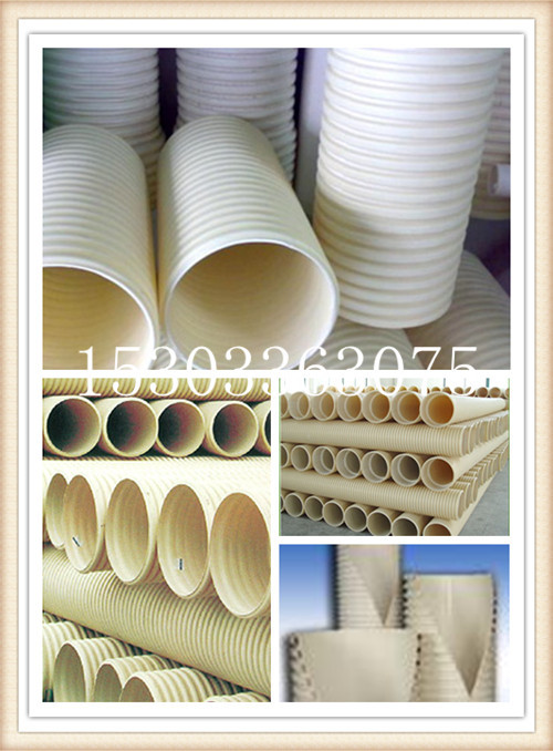 PVC双壁波纹管是一种新型轻质管材,内壁光滑平整,外壁呈梯形波纹状,内外壁间有夹壁中空层,其独特的管壁结构设计使此类管材具有环刚度大、质量轻、耐高压、韧性好、耐腐蚀、耐磨性好、施工方便、安装成本低、使用寿命长等特点,广泛应用于市政改造工程、建筑、工农业排水、农业节水灌溉、污水处理工程等领域。是传统水泥管、铸铁管等其它材质管的最佳替代产品。