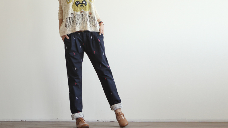 2013春装新款女 韩版刺绣宽松休闲哈伦裤休闲裤长裤百搭裤子211