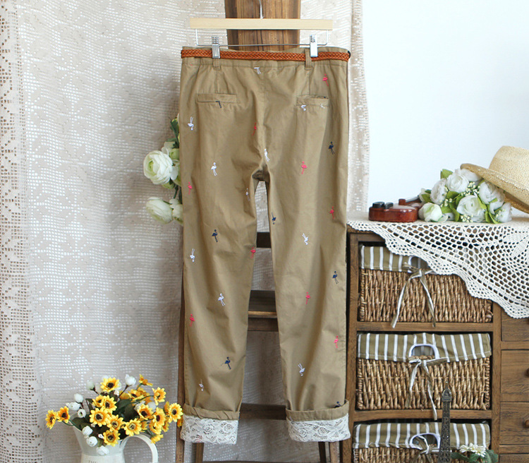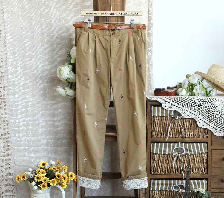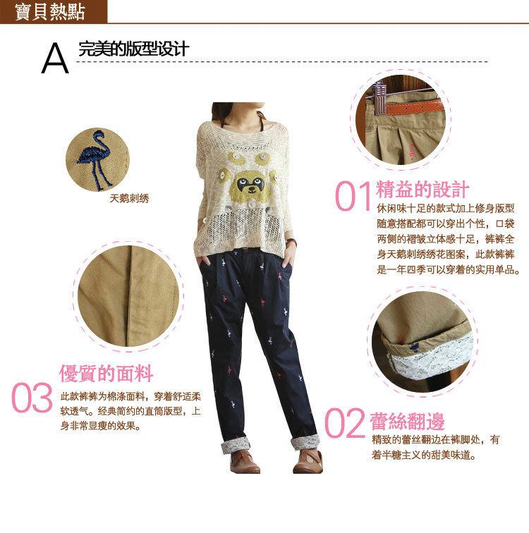 2012秋季新款韩版天鹅绣花蕾丝翻边休闲长裤 女 休闲裤