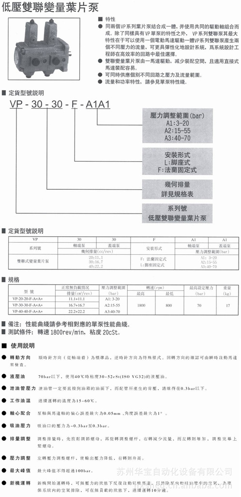 登胜JANUS低压双联变量叶片泵VP3030