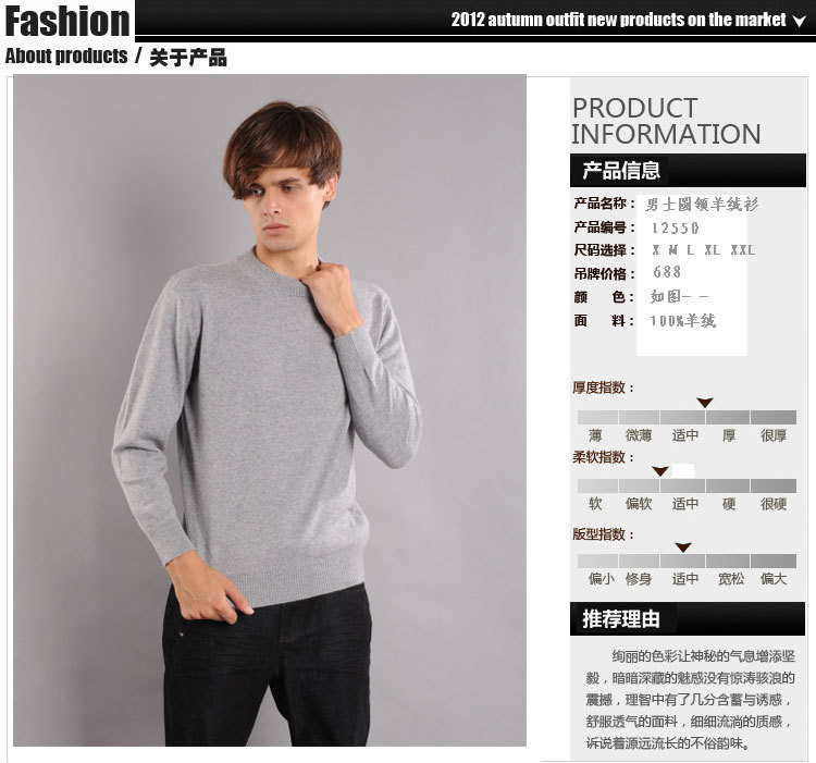 2012秋冬新款羊绒衫 男士圆领量身定做 针织衫 毛衣 羊毛衫