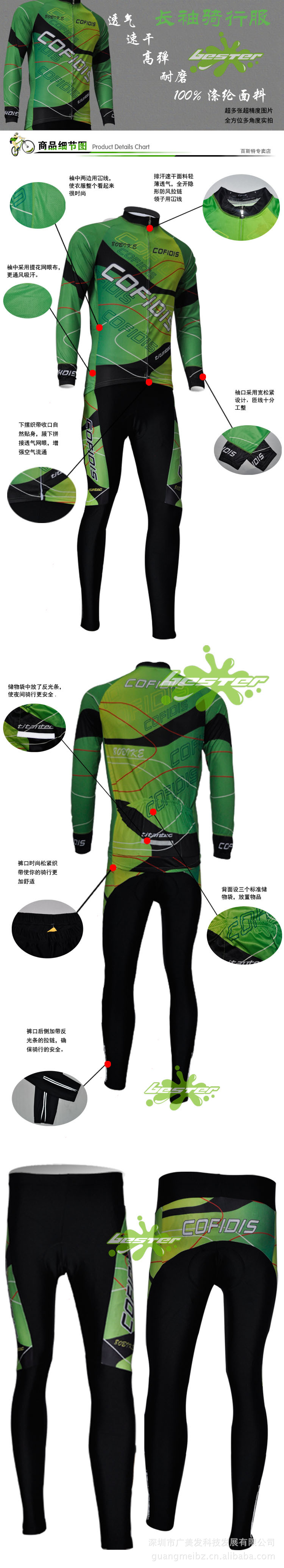 【品名】:炫绿长袖长裤骑行服/自行车单车服 长袖套装(春秋定制版)