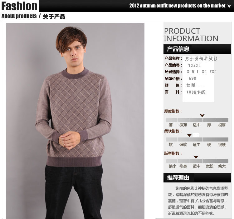 2012秋冬新款羊绒衫 男士圆领量身定做 针织衫 毛衣 羊毛衫
