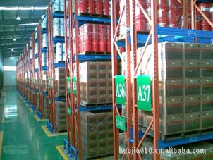 | 重力式货架由托盘式货架演变而成,采用滚筒式轨道或底轮式托盘,轨道呈一定坡度(3°左右),利用货物的自重,实现货物的先进先出,一边进另一边出,适用于大批量、同类货物的先进先出存储作业,空间利用率很高,尤其适用于有一定质保期、不宜长期积压的货物。货架总深度(即导轨长度)不宜过大,否则不可利用的上下“死角”会较大,影响空间利用,且坡道过长,下滑的可控性会较差,下滑的冲力较大,易引起下滑不畅、阻住,托盘货物的倾翻。为使下滑流畅,如坡道较长,应在中间加设阻尼装置,为使托盘货物下滑至最底端时不致因冲击力过大而倾翻,应在坡道最低处设缓冲装置和取货分隔装置,因此设计、制造、安装难度较大,成本较高。此类货架不宜过高,一般在6米以内,单托货物重量一般在1000KG以内,否则其可靠性和可操作性会降低。 |