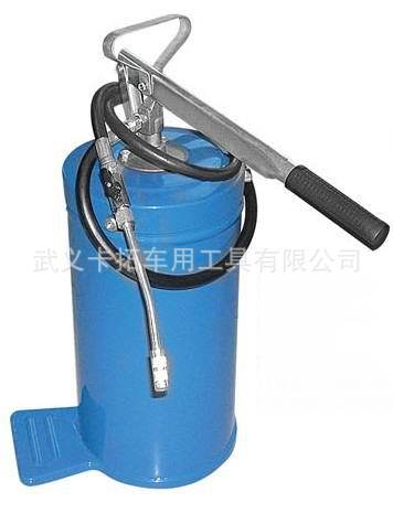 黄油枪黄油枪是一种给机械设备加注润滑脂的手动工具。它可以选装铁枪杆(铁枪头)或软管(平枪头)加油咀。对加油位置方便处于空间宽敞的地方可用铁枪杆(铁枪头),对加油位置隐蔽,拐弯抹角的地方就必须用软管(平枪头)来加油。本品具有操作简单,携带方便,使用范围广的诸多优点,是广大农机手,维修中心的必备工具。