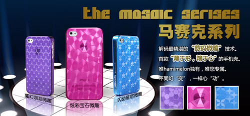 Hamimelon 哈密瓜创新设计理念马赛克系列3D炫彩宝石微雕iPhone4/4S保护套保护壳批发 |