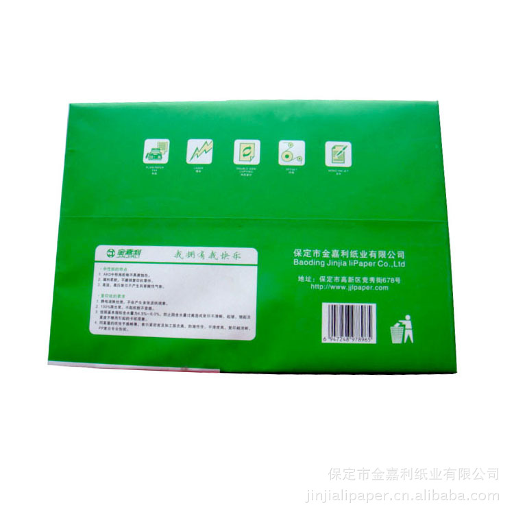金嘉利纸业专业生产各种型号打印纸、复印纸、双胶纸等,适用于各种传真机、打印机、复印机等,具有 韧性高、不卡纸、不起静电等特性。满足各类消费者需求。