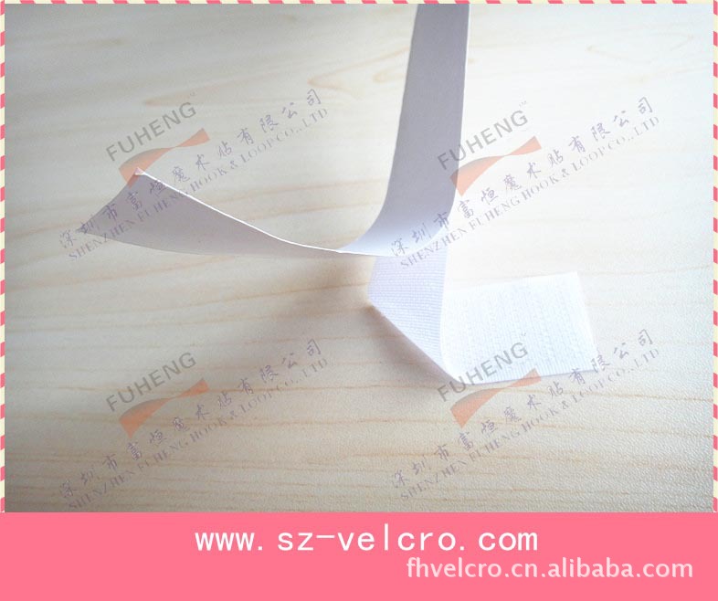 背胶魔术贴可以冲压成为各种规格和形状,可用作凳椅脚的保护垫,也可保护高级音像等家用电的支撑,也可用于雨衣、衣服、手袋上面,只需简易地揭開魔术贴背面的离形油紙,即可粘贴于各类型光滑洁净的物件上。特別适用于纸品、PVC 皮、PP、ABS上,粘贴后1小時即可达到90%的粘性,方便快捷,用途非常广。