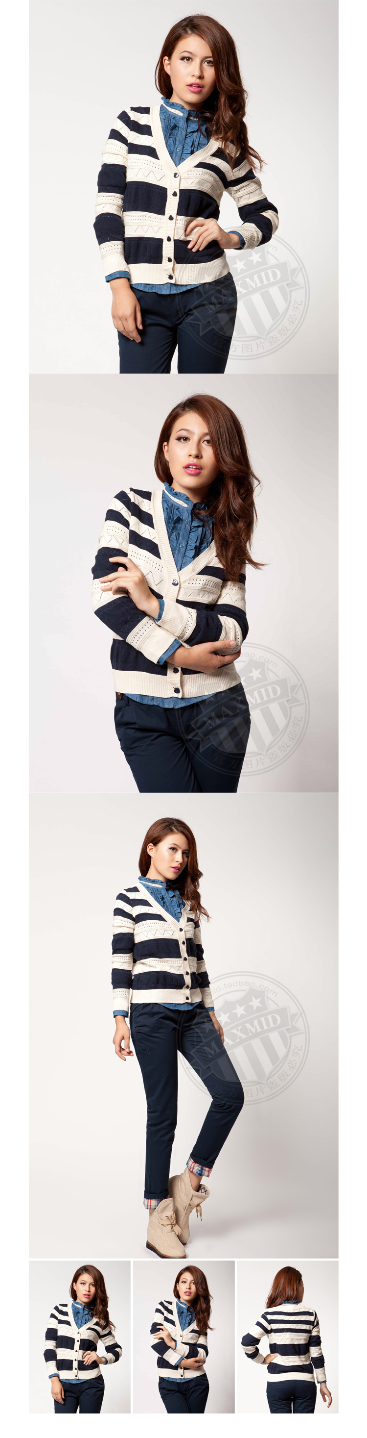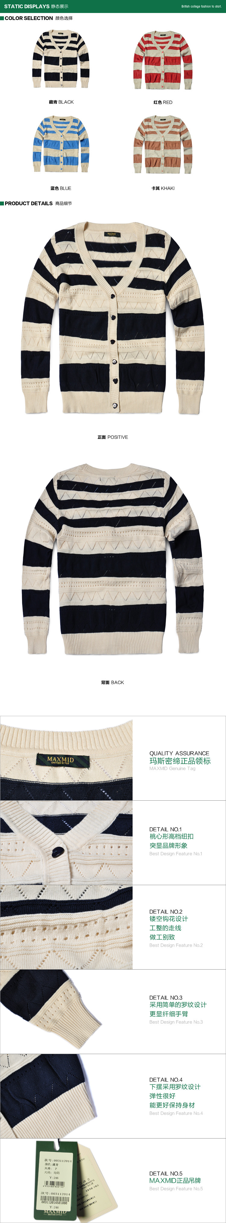 MAXMID英伦学院风女装纯棉条纹女式针织衫开衫毛衣批发003112014