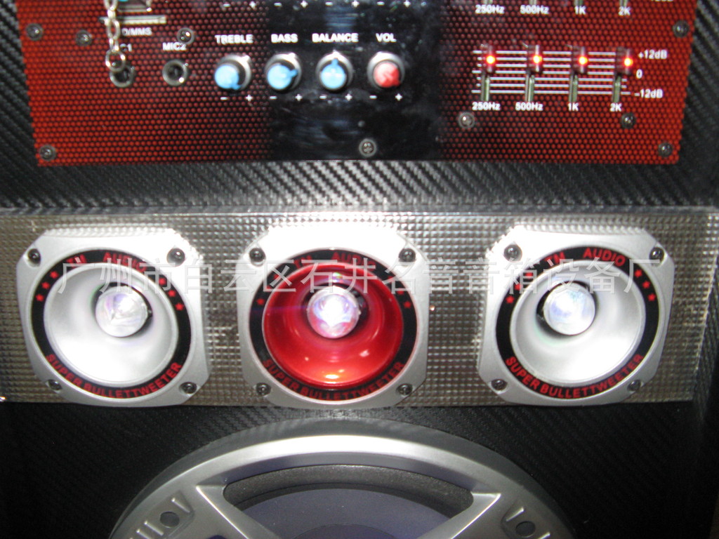 *6个有效音频脉冲灯高音,两个10寸DJ盆音频脉冲灯低音,高音嘹亮,低音厚重。