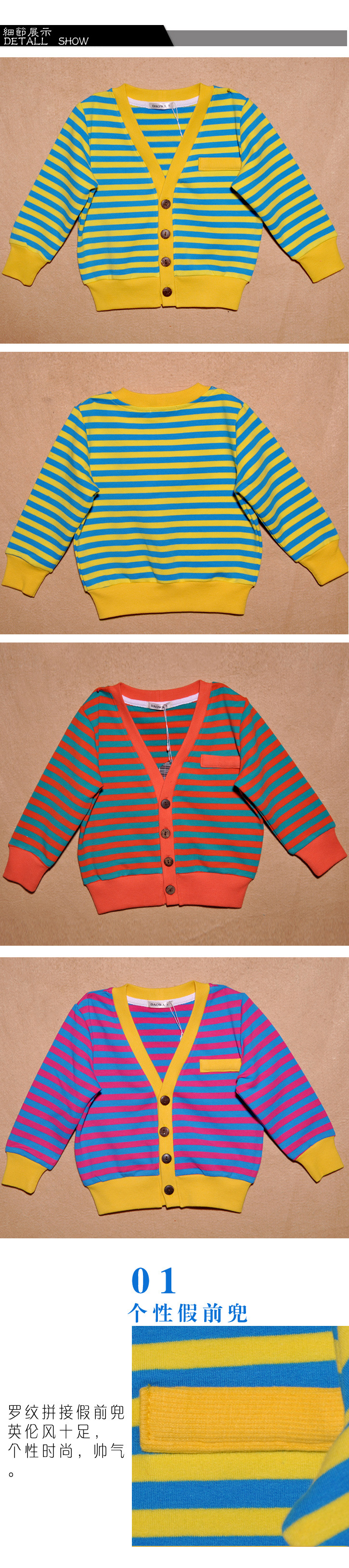 新款时尚韩版儿童开衫 纯棉条纹款 秋款外贸童装批发