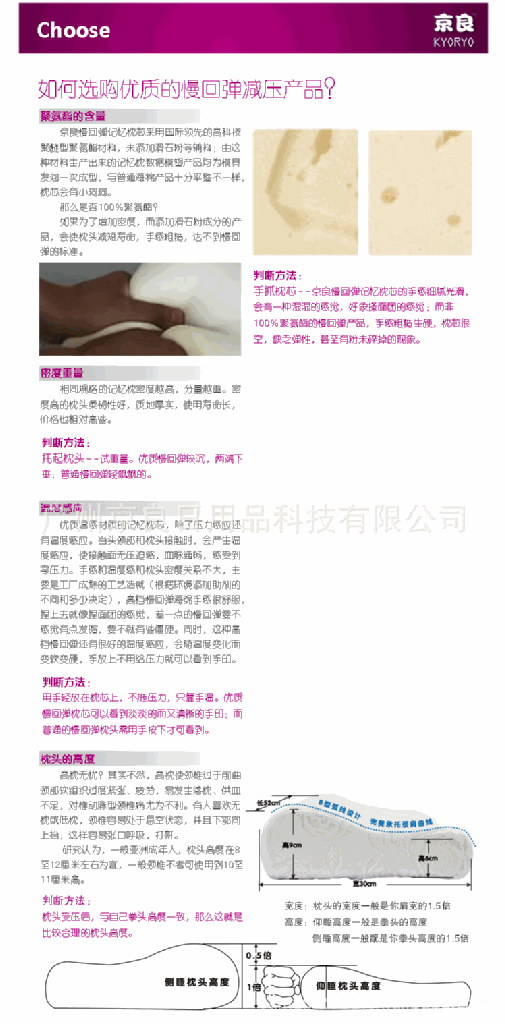 二、使用材料:京良慢回弹零压力记忆枕使用100%进口聚氨酯,通过了SGS的国际标准毒害检测。