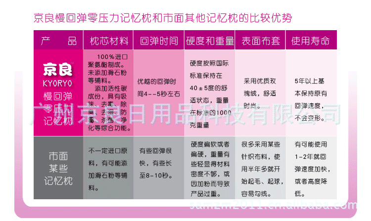5, 京良慢回弹零压力记忆枕和市场上的其他慢回弹枕比较有什么优势?