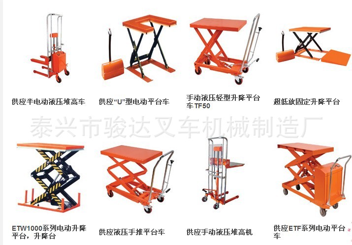 泰兴市骏达叉车机械制造厂是一家以生产轻型运输装载设备的民营企业 ,占地十七亩,创办至今,已经开创了两个具有较好知名度和良好信誉的品牌 。主要生产电动叉车、升降平台、装卸车、圆桶车、搬运车、电子秤等系列的叉车,一直保持着质量优先的原则 。