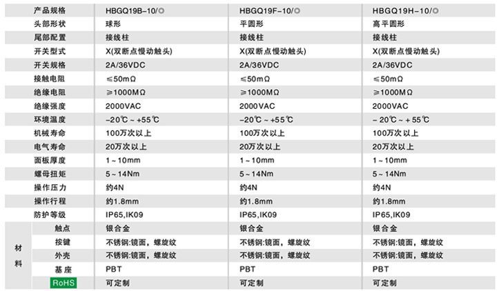 上海红波按钮开关HBS2GQF-11 防水型 自复式/自锁式金属按钮