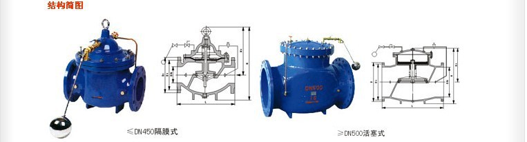 本产品直接利用浮球导阀进行液面控制,不需要其它装置和能源,结构简单,维护保养简便,控制不受水压影响,液面控制准确度高,密封可靠。