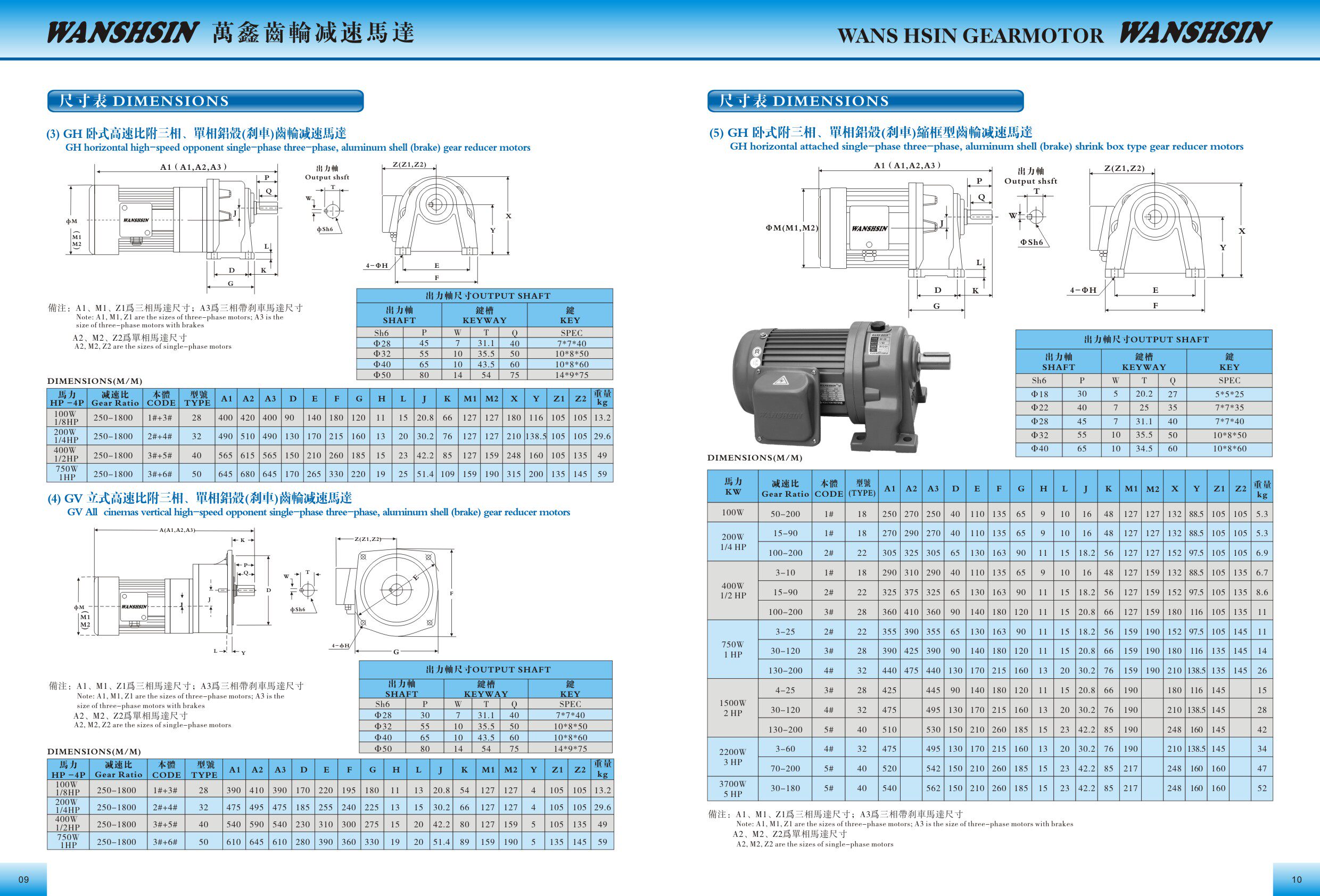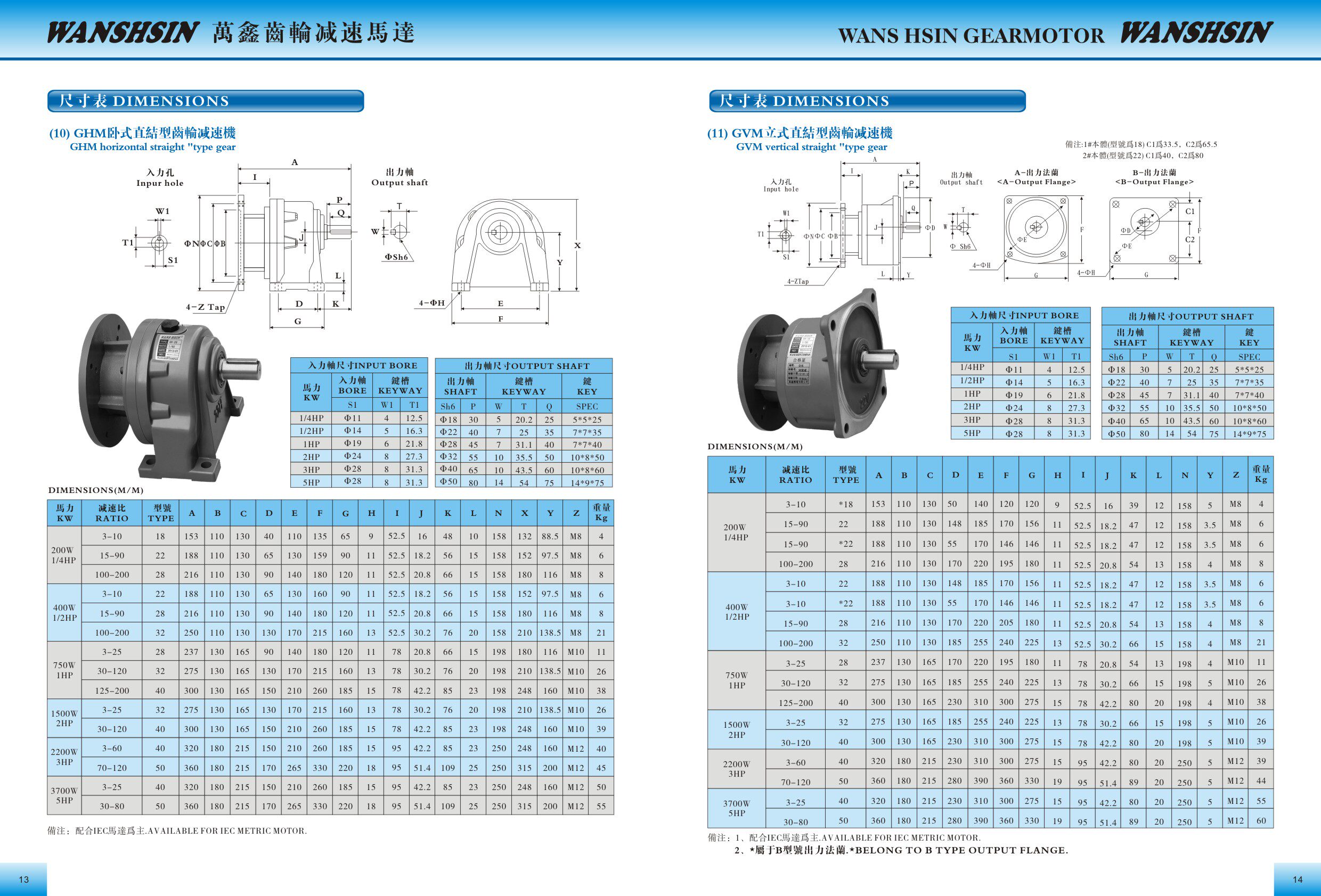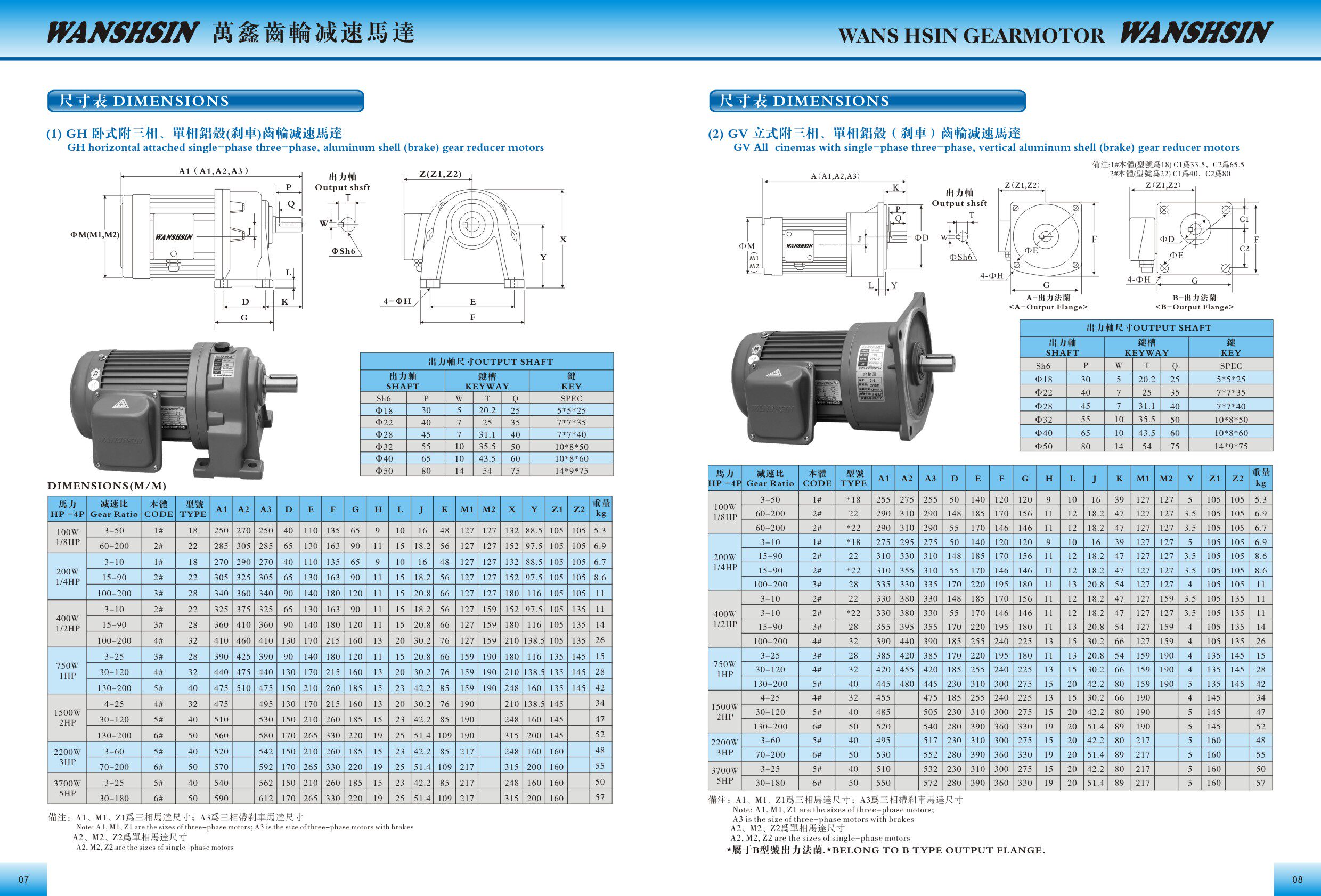齿轮减速马达通常定格功率在0.1KW~3.7KW之间,即1/10HP~5HP马力之间。分为:单相110~220V,三相220V~380V,均可装电磁刹车器