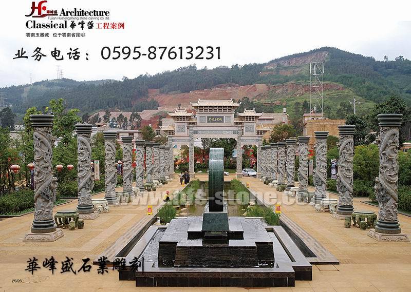 江苏南通九龙柱石雕,总高达21米。是目前世界上最高的龙柱,有2011年由华峰盛石业完成竣工