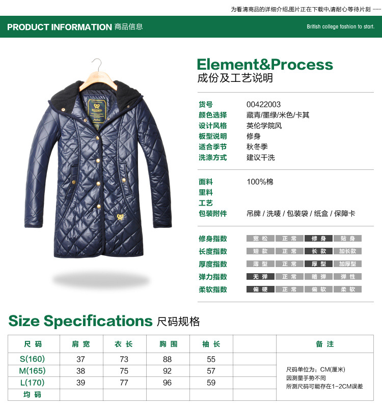 MAXMID新款冬装英伦学院风女装中长款保暖棉衣批发00422003