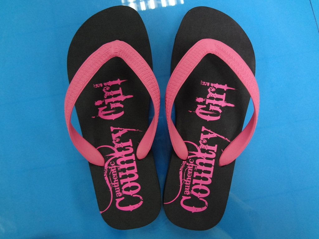 供应促销展览 可转印各种图纹的橡胶人字拖鞋