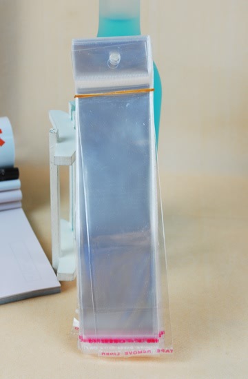 这款opp袋顶部有挂空,底部可以粘起来的,质量非常好,尺寸:4.5*19cm左右(人工测量,有误差)