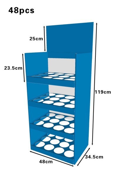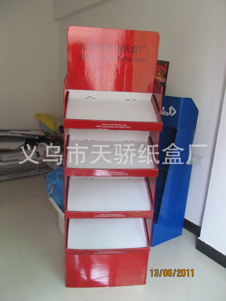 2、展示盒,纸货架全部(或主要)由印刷纸和高硬度纸板,足以承载促销商品,纸货架可承重最大120KG的重量