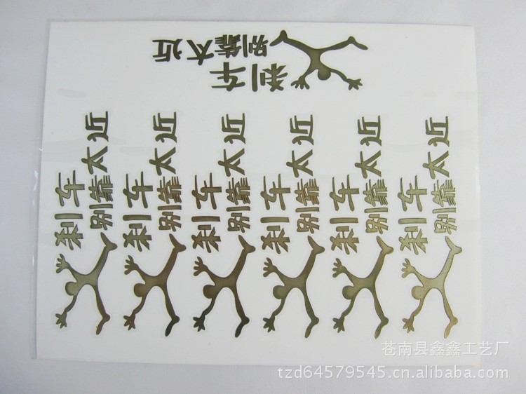 苍南县鑫鑫工艺厂是三维立体标志.金属分体标牌.铝牌、注塑标牌、摩托车标牌、铜牌、奖牌、授权经销牌、钛金牌、堆金、电镀商标等产品专业生产加工的个体经营,公司总部设在苍南县金乡镇河头南路49号,苍南县鑫鑫工艺厂拥有完整、科学的质量管理体系。