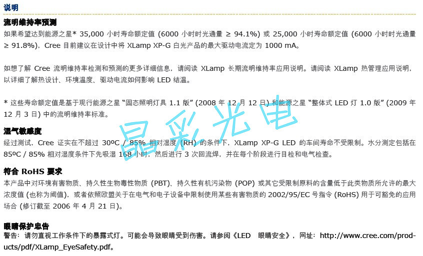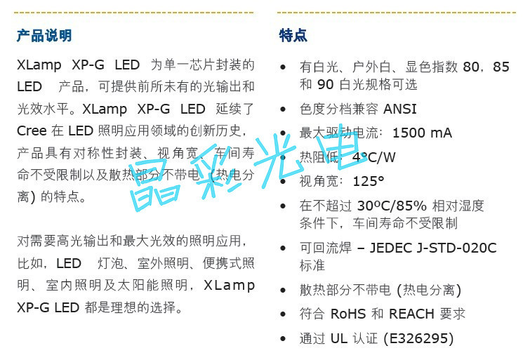Cree科锐原厂大功率LED灯珠冷白6000-6500K/XPG-1C-R4