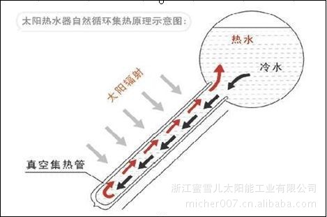 其工作原理是太阳能透过外玻璃照射到内管外表面吸热体上转换为热能,然后加热内玻璃管内的传热流体,由于夹层之间被抽真空,有效降低了向周围环境散失的热损失,使集热效率得以提高。