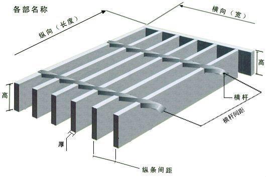 钢格栅又叫钢格栅板、钢格板,它是用扁钢按照一定的间距和横杆进行交叉排列,并且焊接成中间带有方形格子的一种钢铁制品,主要用来做水沟盖板,钢结构平台板,钢梯的踏步板等.扁钢采用材质Q235的热轧扁钢,横杆一般采用经过扭绞的方钢