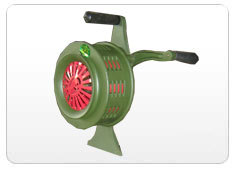 该产品主要原材料采用ZL103铝合金,叶轮轴径配一204向心滚动球轴承。因而体积小、重量轻,摇动活,携带方便。