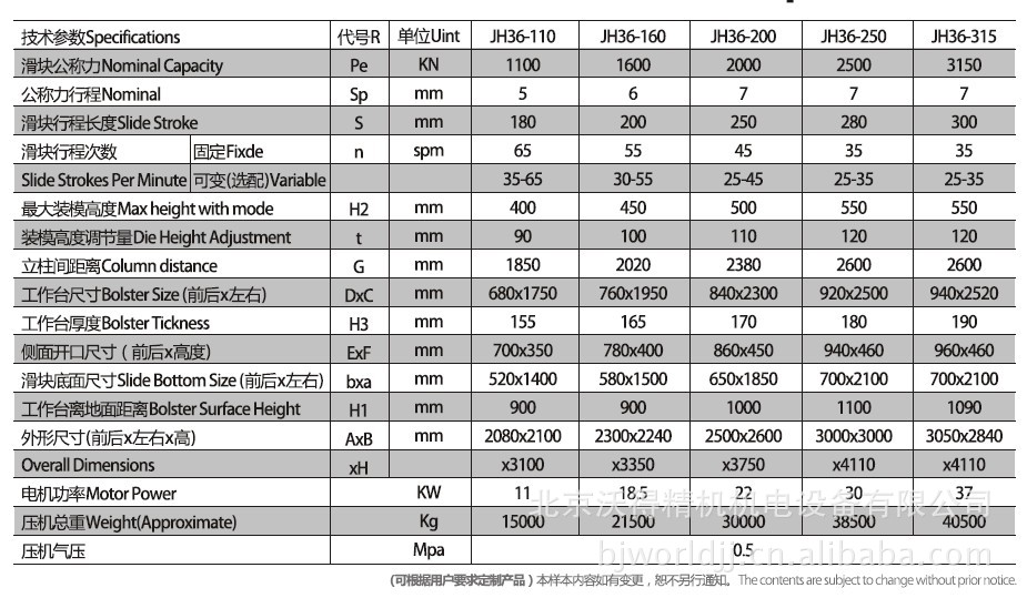 详细介绍:JH25的性能特点:·超大台面机床,适应大面积薄板及自动化级进模生产,提高工作效率;·优质钢板焊接机身,极大提高机身强度和刚度;·采用双曲轴逆向传动,提高了机床抗偏载能力;·滑块采用六面矩形导轨,导向好,精度高;·采用高扭矩湿式摩擦离合器,工作稳定,噪音小,使用寿命长,安全可靠;·电动调模,读数精确到0.1mm;·采用集中润滑,具有循环指示装置;·可配装各类自动化周边设备,大大地提高生产率;·进口电气元器件,提高机床使用性能.