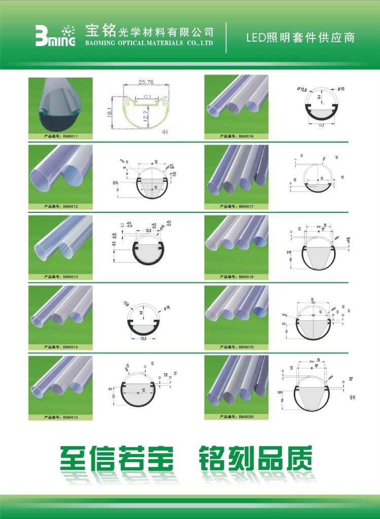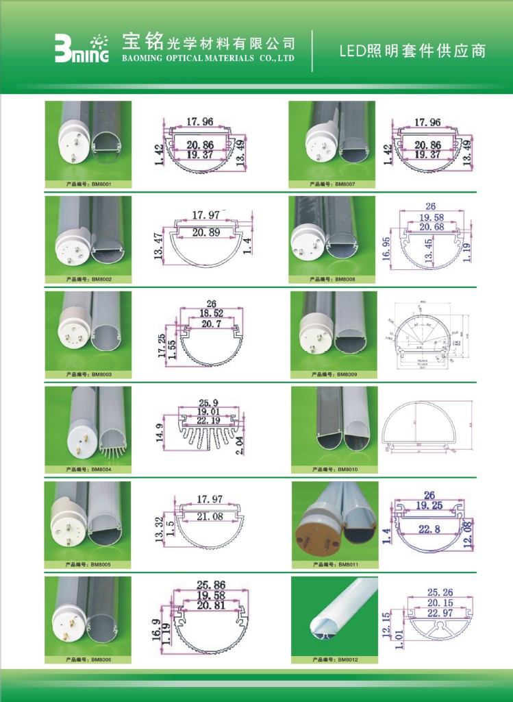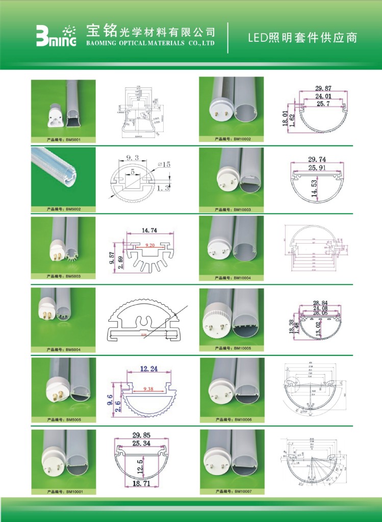 我们将怀惴“为客户创造价值”的理念与LED 制造商和世界LED 的明天共成长。PC透明/磨砂/乳白/光扩散灯罩,规格T5/T8/T10;