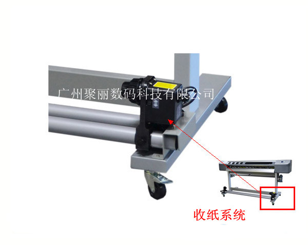 收纸系统为MT系列户内写真机、户外写真机专门设计的,可承载40KG重量,左右机体可通过滑槽移动,便于调节长度;采用感应式张力及轨道结构进行收卷,画面平整展开,确保在打印过程中,材料不走偏,不蹭喷头,收卷齐整。同时减少人工和降低成本。