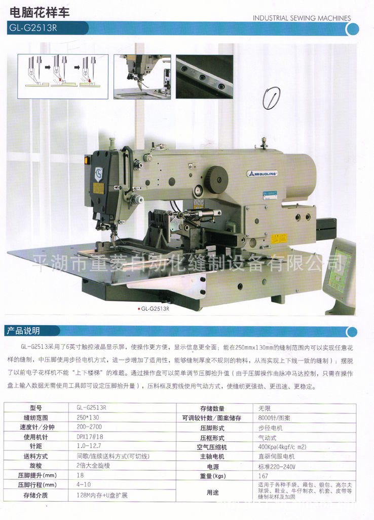 平湖市重菱{宁波}自动化缝制设备有限公司是电脑花样机、电脑同步车、电脑平缝机、箱包设备、制鞋设备等产品专业生产加工的公司,拥有完整、科学的质量管理体系。重菱{宁波}自动化缝制设备有限公司的诚信、实力和产品质量获得业界的认可。欢迎各界朋友莅临参观、指导和业务洽谈。