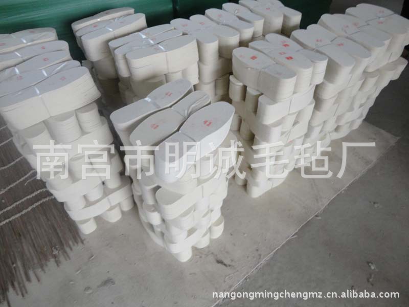 本厂生产的毛毡鞋垫为通用型,适合用于各种鞋。而且不影响外观。质量分类:一级0.68元/双、1200双/件。